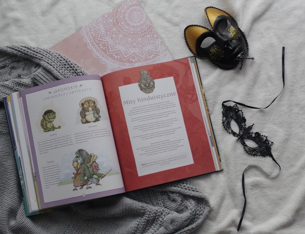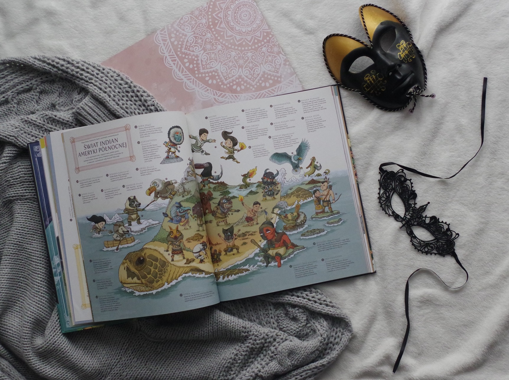 Zapewne znacie mitologię grecką i rzymską, prawdopodobnie nieobca jest wam również mitologia słowiańska, ale czy znacie też mity nordyckie, azteckie, japońskie czy polinezyjskie? Czy kojarzycie chociaż kilka bóstw z mitologii Jorubów, Janomamów i Indian Ameryki Północnej? Jeśli nie, to zachęcam do sięgnięcia po tę książkę, gromadzącą w sobie opowieści ludów, o których istnieniu często zapominamy albo… nie wiemy. Choć Atlas mitów teoretycznie jest książką dla dzieci, to mam wrażenie, że przy jej czytaniu znacznie większą frajdę niż Bąbel (dla którego uszu też nie wszystkie fragmenty się nadają), miałam jednak ja z mężem. Aczkolwiek wierzę w to, że i najmłodszy członek rodziny za kilka lat tę pozycję doceni.