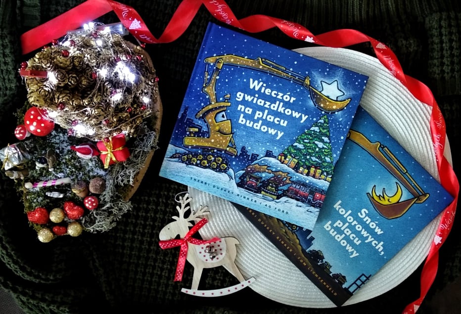 Jeśli wasze dzieci pokochały Snów kolorowych, placu budowy, to doskonale wiecie, że Wieczór gwiazdkowy na placu budowy po prostu musi się w waszej biblioteczce znaleźć. Jeśli jeszcze nie znacie książek Sherri Dyskey Rinker, to gorąco zachęcam do poznania – przyjemne dla ucha, pisane wierszem i uroczo zilustrowane książeczki z całą pewnością podbiją niejedno malutkie serce, a i rodzicom na pewno urozmaicą grudniowe wieczory spędzane pod znakiem wszechobecnych Mikołajów i choinek.