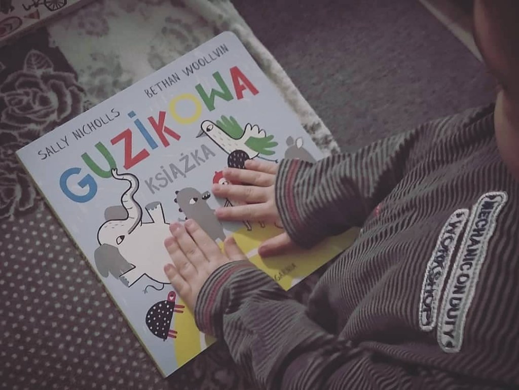 Chyba każdy rodzic wie ile radości sprawia dzieciom naciskanie różnych guzików, włączników i przycisków. Włączanie i wyłączanie światła, przywoływanie windy, naciskanie przycisków na pralce, zmywarce czy piekarniku… Za każdym razem zaskakuje mnie jak wiele szczęścia może dać zwykłe wstawienie prania. W obliczu tego wszystkiego, nikogo nie powinno dziwić, że Guzikowa książka stała się u nas książką tak chętnie i często czytaną. Ja tylko troszeczkę żałuję, że guziki nie mają bardziej wypukłej postaci albo nie są faktycznie klikalne, ale nawet zupełnie na płasko spełniają doskonale swoją rolę.