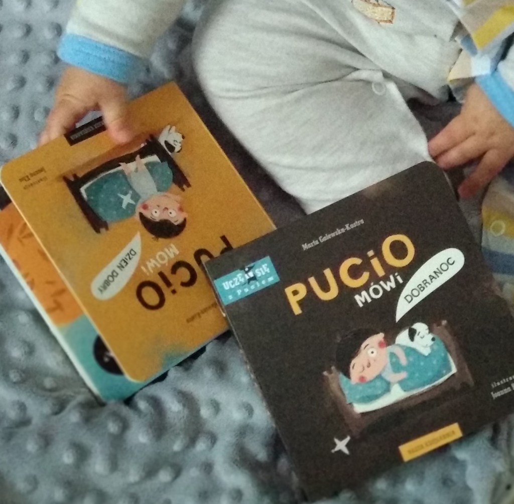 Jestem absolutnie zachwycona! Jakie to są rewelacyjne książki! Wiecie, wątpię, by gdzieś było dziecko, które nie lubi Pucia. Nam ten rezolutny chłopiec towarzyszy właściwie od pierwszych świadomie wydawanych dźwięków. Bąbel z nim rósł, z nim uczył się mówić, z nim jeździł na wakacje, a nawet z nim oczekiwał siostrzyczki, więc zarówno w jego, jak i w moim serduszku, książki Marty Galewskiej-Kustry zajmują naprawdę wyjątkowe miejsce.