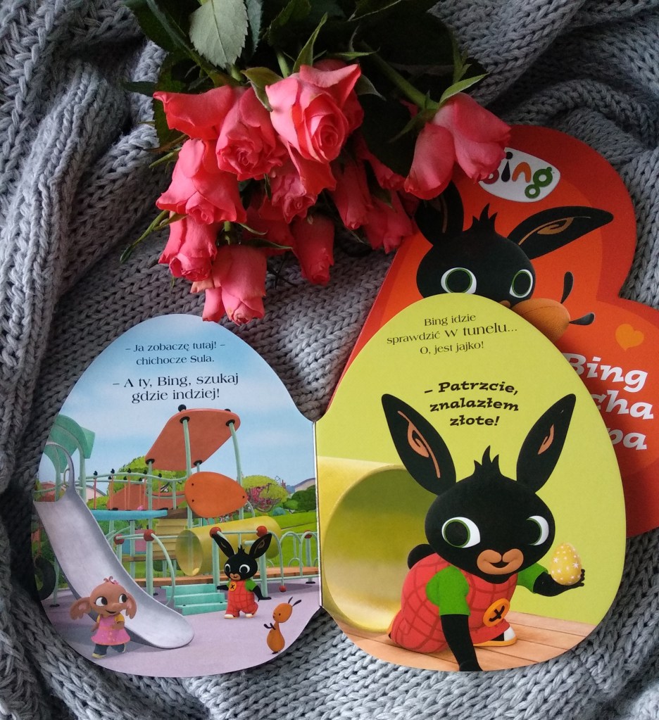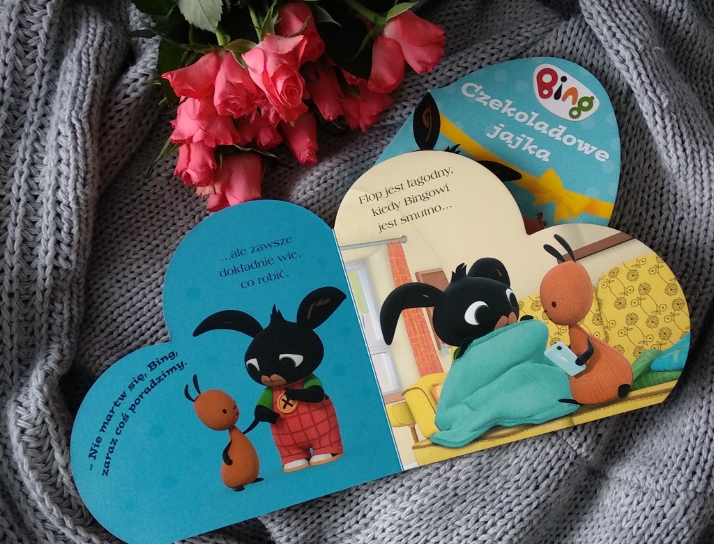 Książki mają ciekawy, wyróżniający się format, który sam w sobie zwraca uwagę i przyciąga wzrok – Bing kocha Flopa została wydana w formie serduszka, Czekoladowe jajka zaś są w kształcie (a jakże!) jajka. Do tego kolorowe ilustracje, proste, ale wartościowe historie – ja jestem na tak.