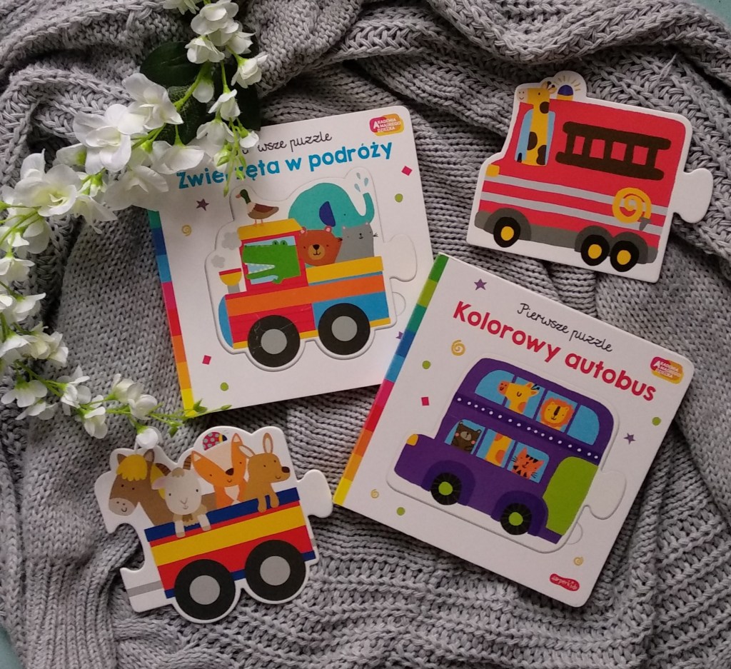 Wielokrotnie wspominałam już o tym, że kochamy Akademię Mądrego Dziecka. Książki z tej serii są u nas ciągle w użyciu, zarówno te dla młodszego, jak i dla nieco starszego dziecka. Tym razem w ramach serii ukazało się coś dla tych zdecydowanie młodszych: pierwsze puzzle, czyli książeczki z dużymi wyciąganymi elementami, które można nie tylko dopasowywać do odpowiednich miejsc w książce, ale również układać poza nią.