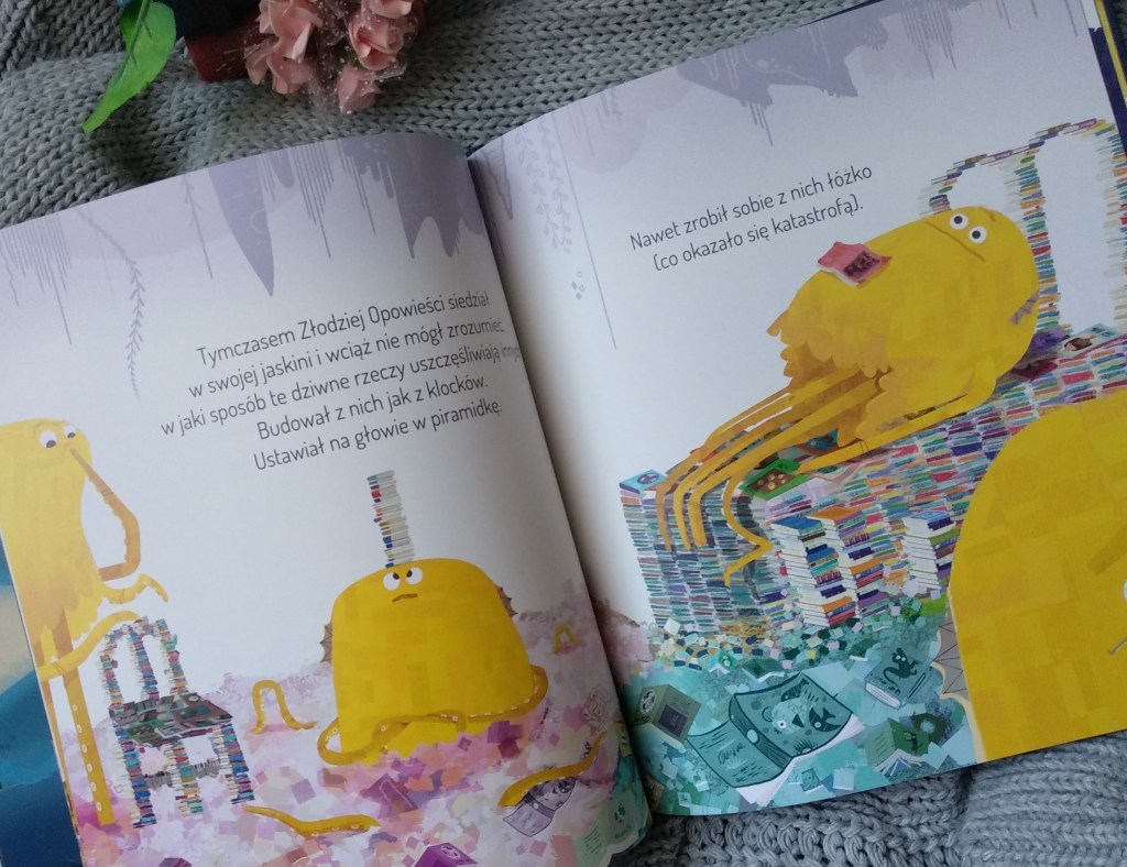 W pewnym miasteczku mieszkała nieśmiała dziewczynka o imieniu Oliwka. Najbardziej na świecie uwielbiała czytać książki, a największą radość dawały jej wyprawy do biblioteki, skąd mogła wypożyczać wciąż nowe opowieści. Któregoś razu, gdy wracała z tatą z naręczem kolejnych lektur jedna z nich wpadła do morza, a opadając na samo dno obudziła pewnego morskiego stwora. Ten nie wiedząc co zrobić z dziwnym przedmiotem – zjeść go, rozgnieść, założyć na głowę? – wyruszył jego tropem, by czegokolwiek się dowiedzieć. W ten sposób dotarł do miasteczka, gdzie okazało się, że tych tajemniczych rzeczy jest znacznie więcej. Co ciekawsze, ludzie i zwierzęta bardzo je lubią, postanowił więc zgromadzić je wszystkie, odbierając książki nie tylko Oliwce, ale i staremu latarnikowi, maskonurowi, lisom, a nawet krabom. A gdy zgromadził już wszystkie książki z całego miasteczka, okazało się, że… nadal nie wie co z nimi zrobić.