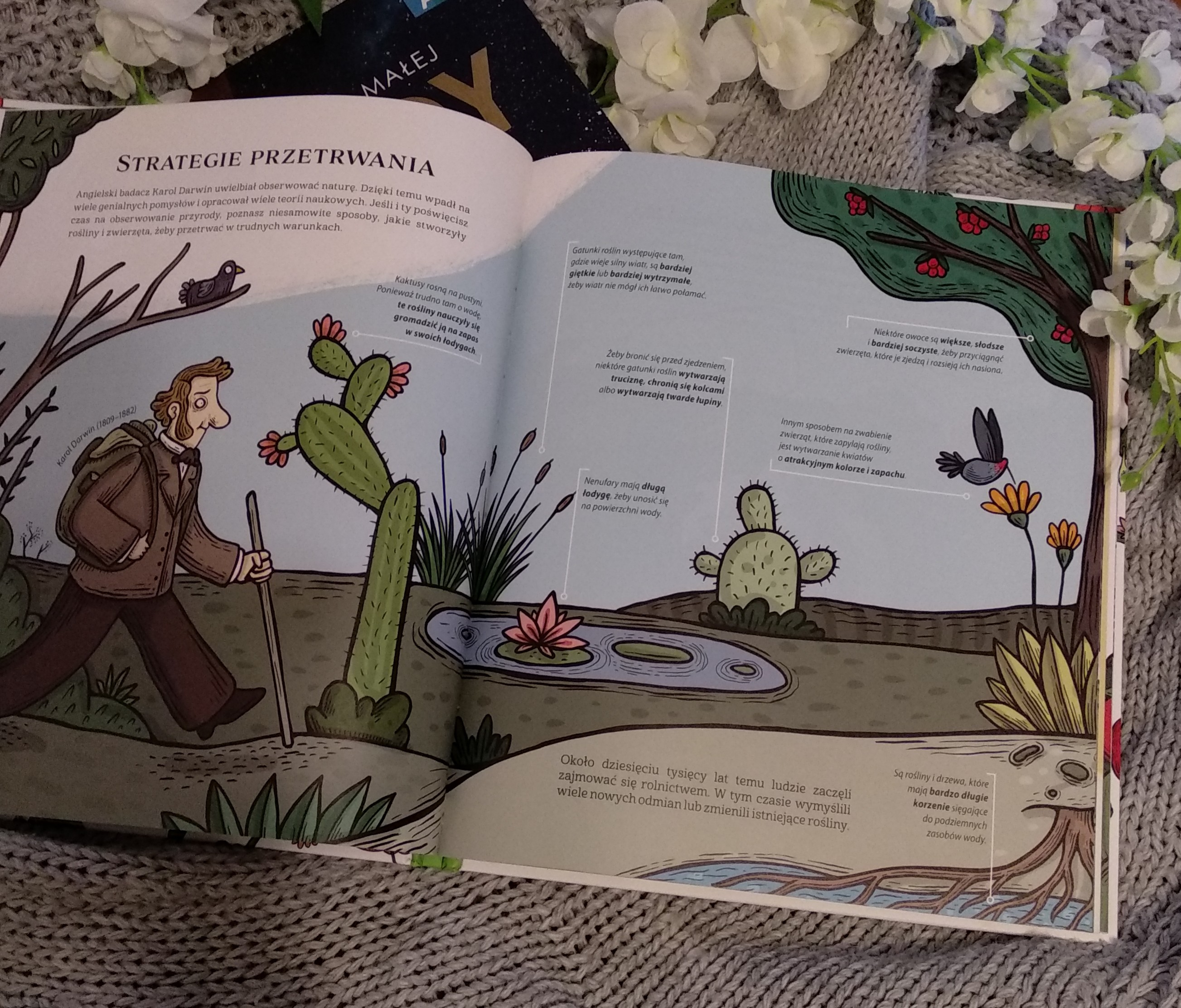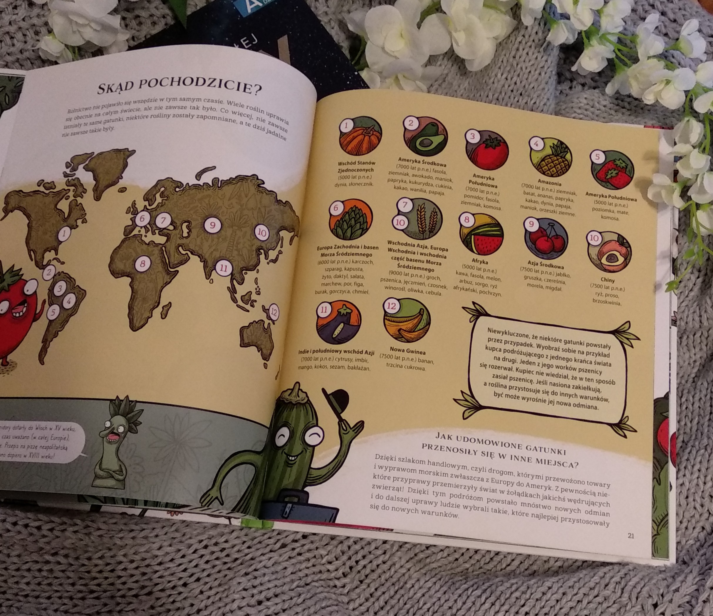 W książce Dlaczego jemy rośliny znajdziemy naprawdę sporo interesujących informacji. Od tego jak odróżnić rośliny dzikie od udomowionych, w jaki sposób chronią się one przed trudnymi warunkami, skąd pochodzą i w jaki sposób przedostają się na inne miejsca, poprzez początki rolnictwa, próby krzyżowania gatunków (można nawet samemu się takiej próby podjąć), aż po podstawowe zasady genetyki i dziedziczenia pewnych charakterystycznych dla danego gatunku cech. Autorzy przemycają mnóstwo ciekawostek, a wyjątkowe ilustracje z pewnością zachęcą do sięgnięcia po tę publikację, mi jednak zabrakło tu przede wszystkim odpowiedzi na tytułowe pytanie. Dlaczego w Polsce raczej nie spróbujemy owoców mangostanu, jak wygląda dzika kolba kukurydzy, czym na ogół nawozi się jabłonkę albo co łączy jarmuż, brokuł i rzepę? O tym wszystkim tu przeczytamy, jednak o tym dlaczego właściwie jemy rośliny jest tu raczej niewiele.