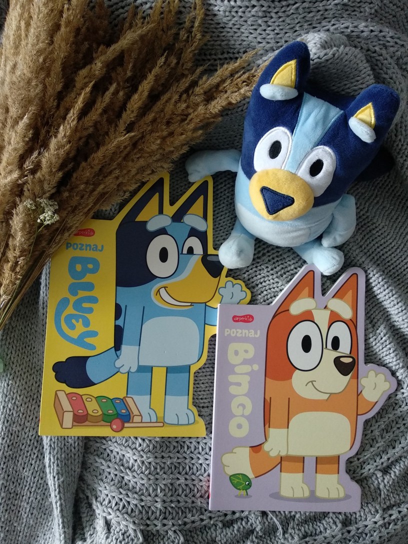 Z ogromną radością powitaliśmy w swoich progach Bluey i Bingo w wersji papierowej (albo raczej kartonowej, bo to książki zdecydowanie przystosowane do najmłodszych czytelników). Ciekawy format, krótki, zabawny tekst i ilustracje dobrze znane z telewizyjnego ekranu sprawią na pewno, że mali fani z przyjemnością sięgną po te książeczki, ale… Wcale nie trzeba znać telewizyjnej wersji, żeby dobrze bawić się przy lekturze, bo Poznaj Bluey i Poznaj Bingo to książki, które po prostu przybliżają te urocze postacie.